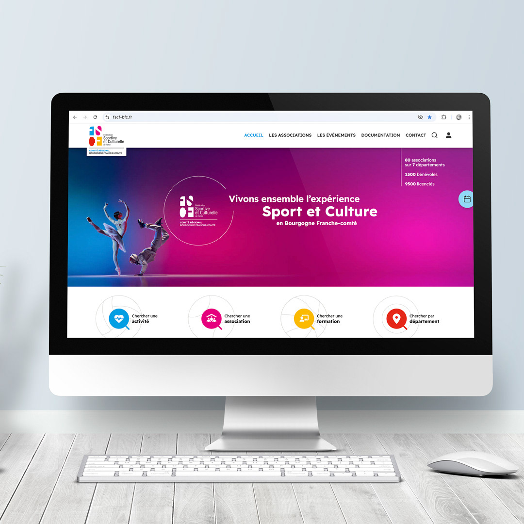 Le Comité Régional Bourgogne–Franche-Comté de la Fédération Sportive et Culturelle de France (FSCF-BFC) nous a confié, en collaboration avec Cédric Nirousset (nyro.dev), la refonte intégrale de son écosystème digital : site public et intranet. L’objectif : moderniser l’identité visuelle, améliorer l’expérience utilisateur et rationaliser la gestion des contenus pour les équipes et les associations membres.