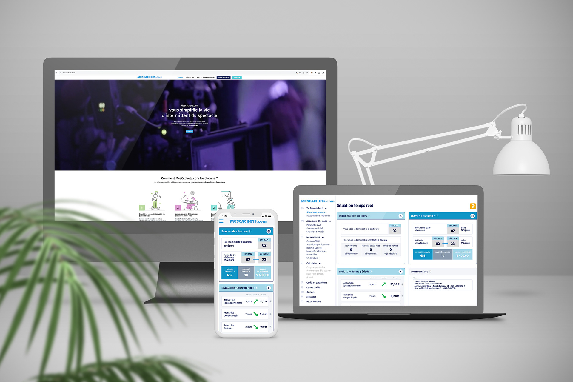 MesCachets.com naît en 2008 avec l’objectif d’aider les intermittents du spectacle à gérer et anticiper leur situation professionnelle via une solution en ligne. Développé en 2011, le site propose un espace public et un espace privé sécurisé permettant le suivi des contrats, des indemnités et des simulations sur la base d’un abonnement annuel. En 2023, Une refonte graphique du site public et privé a été effectué.
